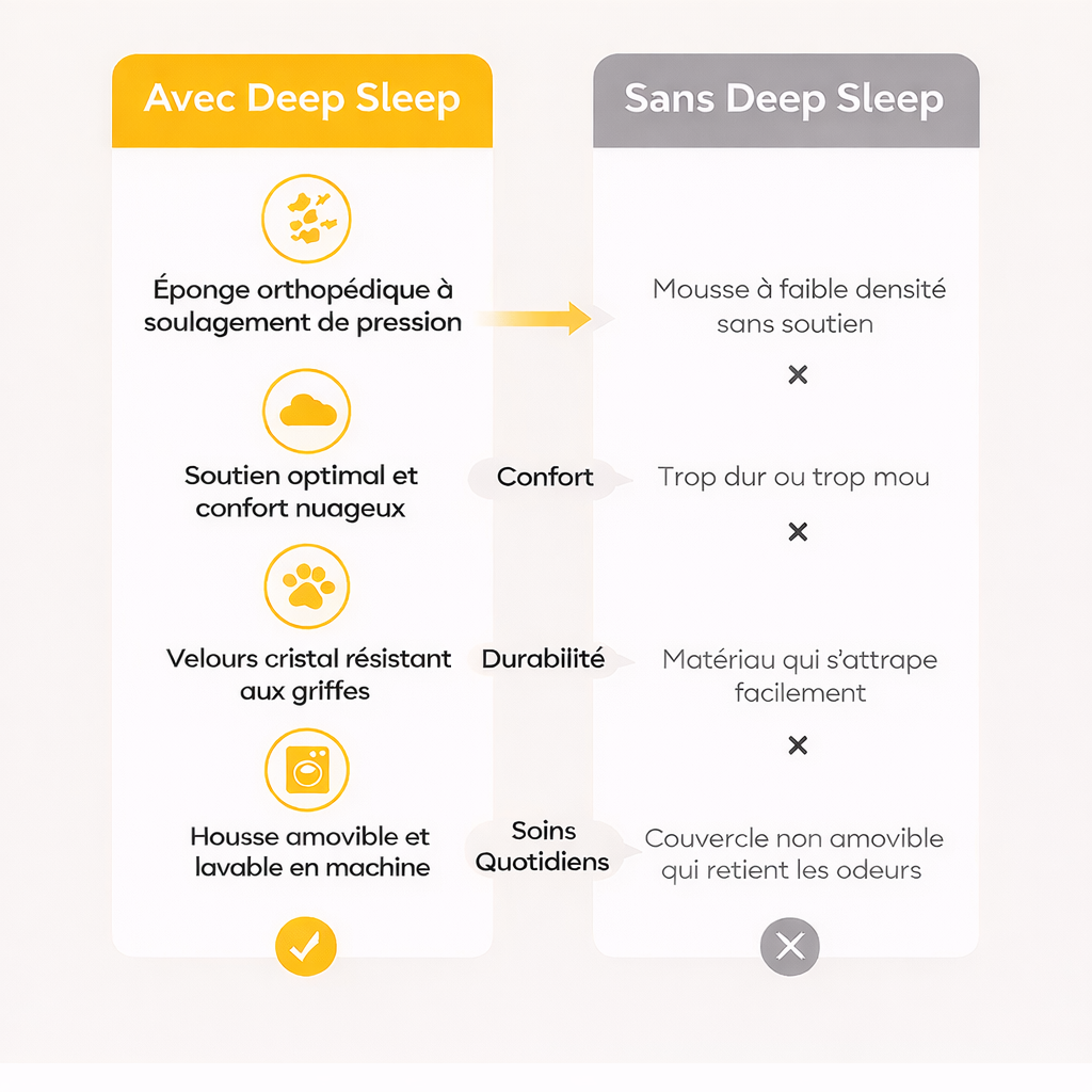 Grâce à sa forme enveloppante, Deep Sleep™ procure une sensation de sécurité qui aide votre chien à se détendre et à mieux dormir.